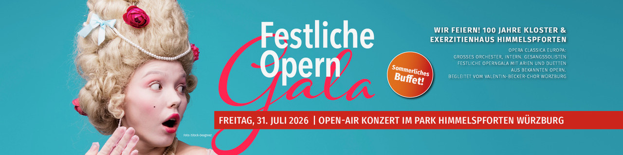 Unter der Leitung von Prof. Hans Friedrich Härle präsentiert das Ensemble der Opera Classica Europa im sommerlichen Ambiente des Park Himmelspforten eine festliche Opern Gala mit Arien und Duetten aus bekannten Opern von Verdi, Mozart, Schubert und Rossini. Auch klerikale Werke wie Mozarts Halleluja oder die Arie Panis Angelicus werden zu hören sein. Das Ensemble der Opera Classica gastiert in Würzburg mit großem Orchester und jungen, hochtalentierten internationalen Opernsänger:innen.